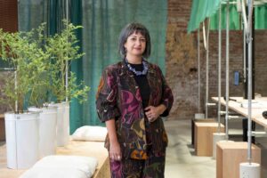 ويأتي هذا بفضل المعرض المبتكر الذي يحمل عنوان “على نارٍ هادئة”، من تقييم المعمارية والأستاذ المساعد في جامعة زايد والمؤسِسة المشاركة ومديرة الأبحاث في استوديو هولسوم، عزه أبوعلم، وهي أول قيّمة فنية إماراتية تشرف على مشاركة الدولة في بينالي العمارة.”